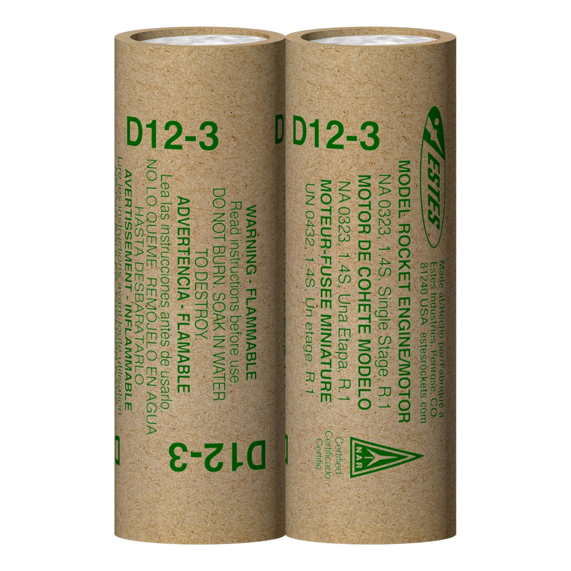 The Estes D12-3 engine is a powerful, short-delay motor designed for heavier rockets that need quick recovery deployment. Its high-thrust profile makes it perfect for advanced modelers looking to fly large single-stage designs with confidence. Each two-pack includes everything you need for ignition: two D12-3 engines, two starters, and four starter plugs. Whether launching payloads or large airframes, the D12-3 delivers the performance and reliability Estes is known for.